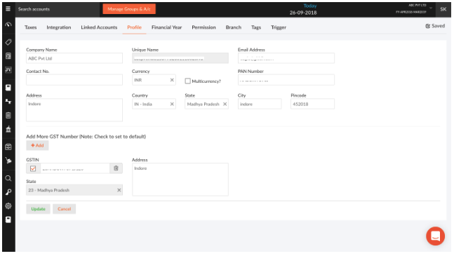 C. Now go to the settings from the navigation panel, click on Profile, and fill all the information like your company GSTIN, Address etc.